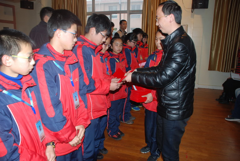 中學(xué)部秦梅芬校長宣讀了獲獎學(xué)生名單,并邀請總校鄢革新校長、中學(xué)部崔益峰校長、秦梅芬校長為學(xué)生頒獎。