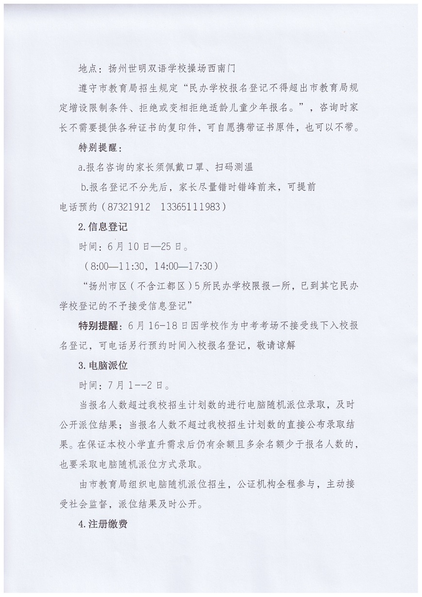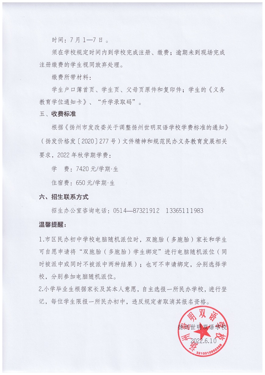 2022年揚(yáng)州世明雙語(yǔ)學(xué)校初一招生方案