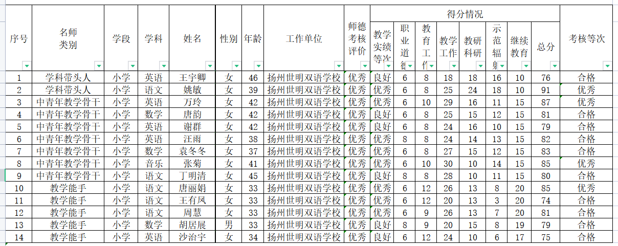 ? ? 根據(jù)市《關(guān)于開展2021-2022學(xué)年區(qū)級學(xué)科帶頭人、中青年教學(xué)骨干、教學(xué)能手業(yè)務(wù)考核工作的通知》,現(xiàn)擬下列老師考核結(jié)果公示如下: