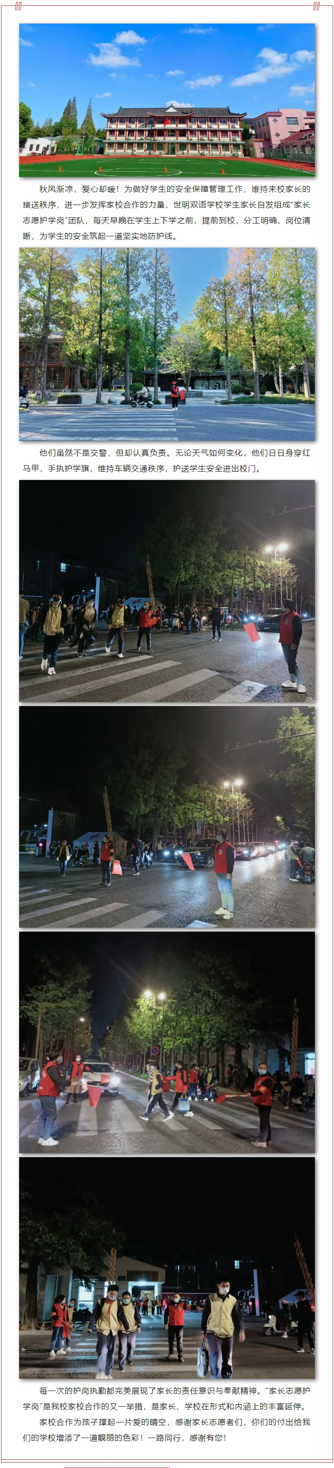 家校協(xié)力保安全 暖情護學(xué)寫奉獻——世明雙語學(xué)校中學(xué)部家長志愿者維持交通秩序