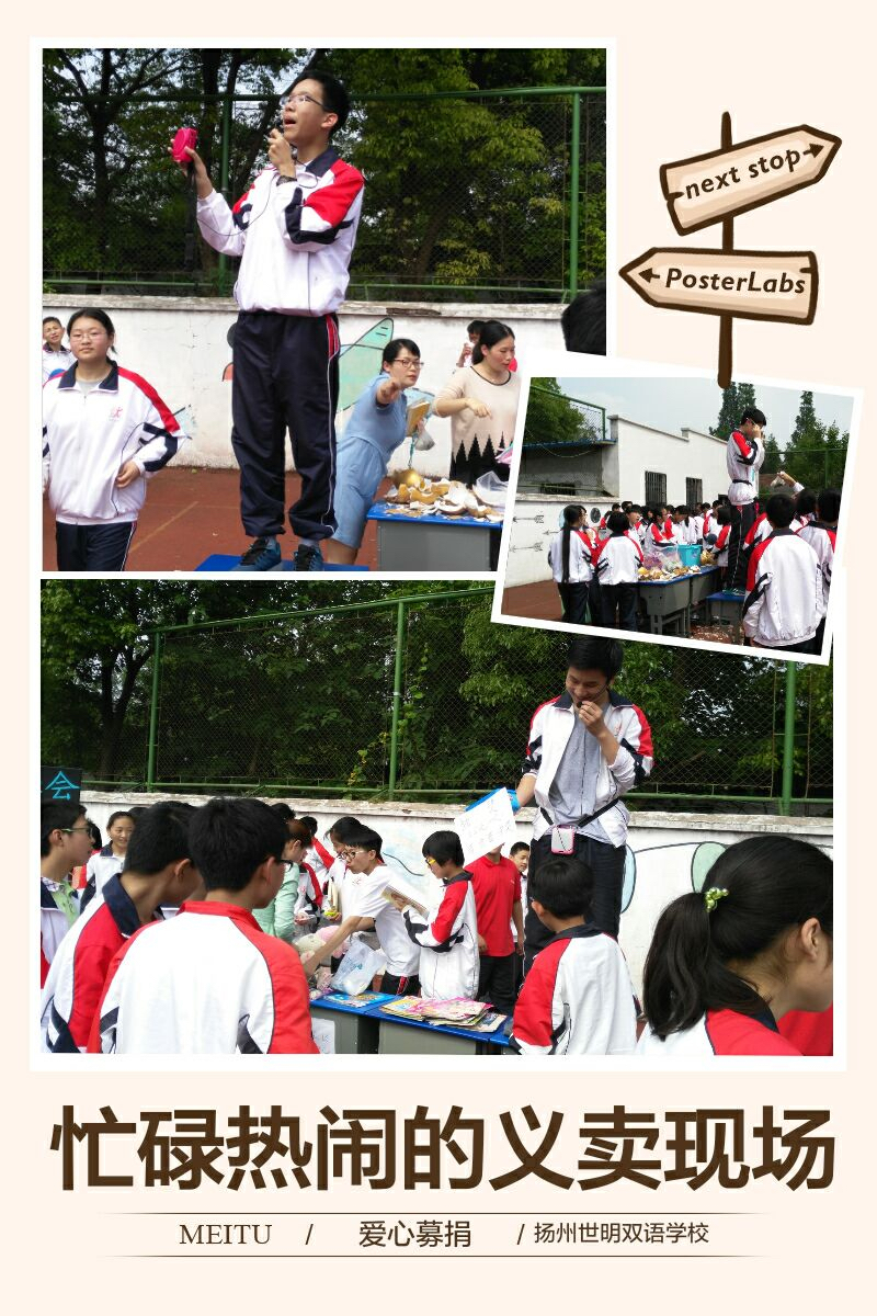 你我攜手 讓愛(ài)飛翔 ——關(guān)于我校中學(xué)部“愛(ài)心義賣”活動(dòng)的報(bào)道 “當(dāng)我們漫步街頭盡情地欣賞那繁華景象時(shí);當(dāng)我們滿足的吃著零食聊著天時(shí);當(dāng)我們?cè)谙硎茇S富的物質(zhì)與精神生活時(shí);……此時(shí)此刻,你可曾想到,在同一片藍(lán)天下,在我們的學(xué)校中,有一些因貧困而面臨失學(xué)的同學(xué),你可曾看到,他們?cè)谏钪泄?jié)衣縮食在緊張的學(xué)習(xí)之余還要為家人健康而牽腸掛肚,對(duì)此,我們又怎能無(wú)動(dòng)于衷呢... ...”這是團(tuán)委負(fù)責(zé)人陳璐老師的一段話,此時(shí),我校中學(xué)部孩子們正集體列隊(duì)于操場(chǎng),聆聽(tīng)著陳老師為我?!皭?ài)心義賣”宣讀倡議書(shū)。 ?這是2016年5月30日的課間操時(shí)間,在六一兒童節(jié)即將來(lái)臨之際,中學(xué)部校長(zhǎng)室、學(xué)工處倡導(dǎo)給中學(xué)部這群大孩子們一個(gè)不一樣的兒童節(jié),讓他們?cè)诳鞓?lè)中能體會(huì)奉獻(xiàn)愛(ài)心、幫助他人的快樂(lè),故總校紅十字會(huì)幫助聯(lián)系了揚(yáng)州電視臺(tái)《今日生活》欄目組,舉行了此次“愛(ài)心義賣”活動(dòng),所得善款全部用來(lái)幫助欄目組聯(lián)系的貧困家庭,并決定長(zhǎng)期定向捐助五個(gè)貧困家庭。 ?陳老師宣讀完倡議書(shū)后,中學(xué)部崔益峰校長(zhǎng)宣布此次義賣活動(dòng)正式開(kāi)始,孩子們就真的行動(dòng)開(kāi)了,每個(gè)班級(jí)為一個(gè)方陣,各自叫賣著自己的商品或服務(wù)。有賣自己心愛(ài)的玩具、書(shū)籍等物品的;有賣自己辛苦制作的愛(ài)心壽司的;有賣鮮榨果汁的;還有抽獎(jiǎng)的、拍賣的... ... 孩子們?yōu)榱嘶I得更多的善款,提前準(zhǔn)備了吸引人眼球的海報(bào)、商品,賣力地吆喝著,每接過(guò)一份收入臉上都是那么的欣喜,仿佛已經(jīng)看到這些善款變成了貧困孩子手中的一本書(shū)、一支筆。 ?本次活動(dòng)共籌得善款7939元,將全部捐給《今日生活》欄目組聯(lián)系的貧困的孩子們。我校團(tuán)委陳老師也于5月29日,利用周末時(shí)間帶著五個(gè)貧困家庭的孩子們提前感受了六一兒童節(jié)的快樂(lè),給他們帶去了生活、學(xué)習(xí)用品,并帶著他們游玩了宋夾城等地,也讓這些孩子感受了同齡人的快樂(lè)。 ?這是一次有意義的活動(dòng),也將成為我校中學(xué)部的一個(gè)特色活動(dòng),感染著一批有一批的孩子們,讓他們體會(huì)用自己的雙手幫助他人的快樂(lè)、滿足與踏實(shí)。 (中學(xué)部 劉葉) ? ?