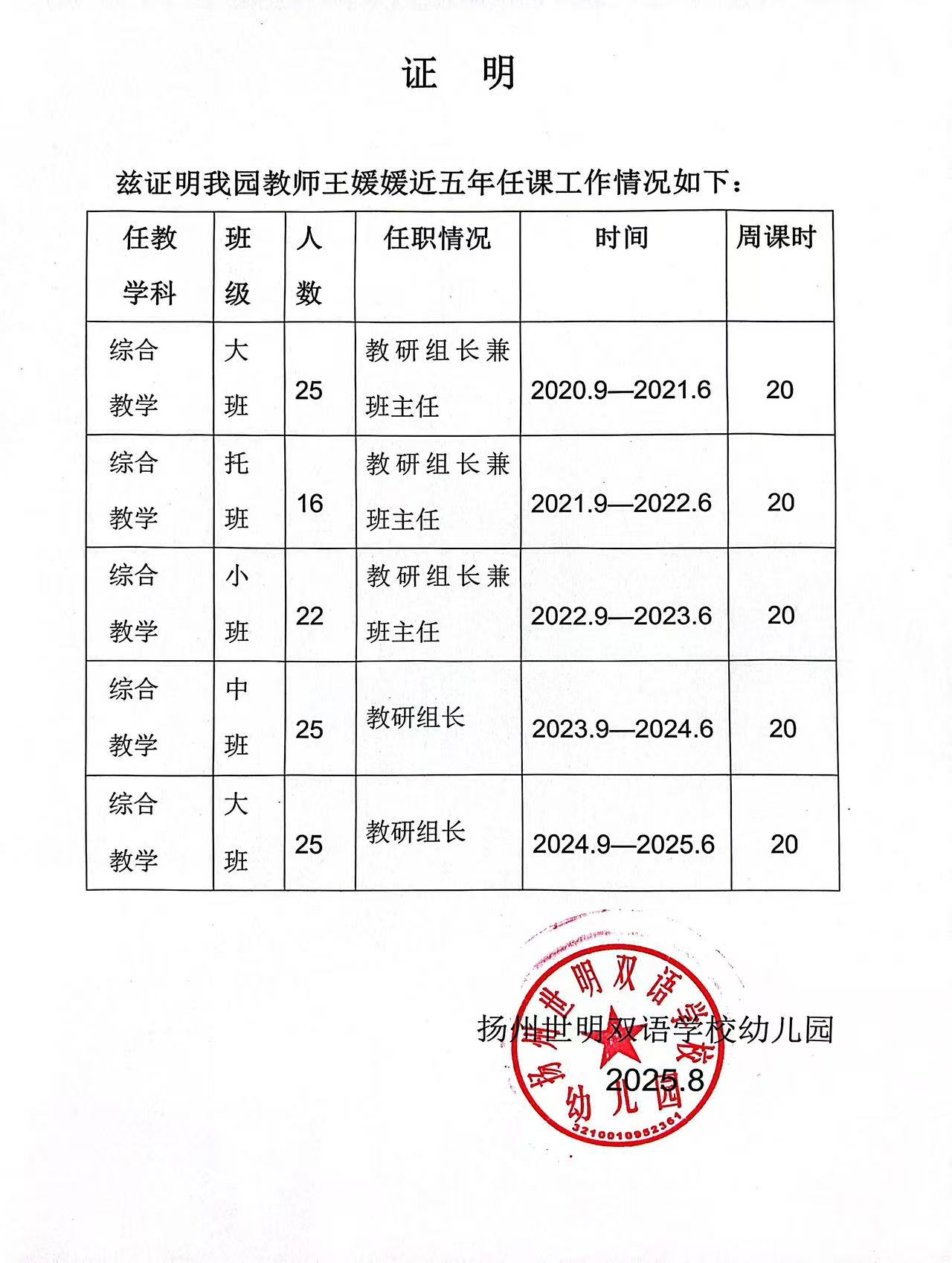 教師任職證明