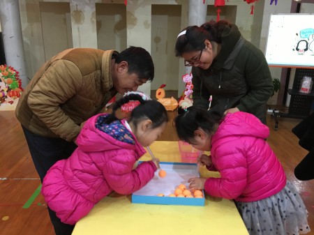 此后,“元宵喜樂會”活動在各年級組火熱展開:中班幼兒在家長的幫助下,自己動手搓元宵。搓團、壓扁、放餡,包實,雖然孩子的動作有些笨拙,但自己動手做出湯圓的這份樂趣是不可替代的;小班寶貝們和父母專心地制作“特色花燈”,自己動手通過剪貼涂色等制作形式,制作精美的小狗燈。孩子們提著自己制作的小花燈歡歡喜喜迎接元宵節(jié)的到來;大班的猜燈謎活動現(xiàn)場則處處體現(xiàn)著孩子們的智慧與收獲。隨后的“鬧元宵”活動更是將本次“元宵喜樂會”活動推向高潮:“吸湯圓、煮湯圓、炒元宵、吃湯圓、元宵滾滾來”等有趣的與“元宵”有關的游戲,加深了親子之間的情感,讓親子雙方共同感受到節(jié)日的歡愉。