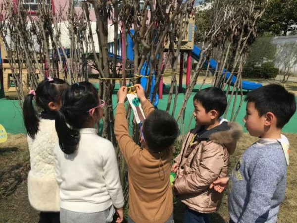 活動中,孩子們在老師的帶領(lǐng)下,來到了世明幼兒園植物綠化區(qū)觀察樹木的變化,大家驚喜地發(fā)現(xiàn)雖冬寒還未褪盡,但春天已經(jīng)帶著綠色的氣息向我們悄悄走來,春風(fēng)吹綠了樹枝上的嫩芽。為了更好地保護樹兒的生長,孩子們給校園里的各種樹木設(shè)計了愛心標(biāo)識牌,貼心地為樹兒掛上愛心牌,提醒小朋友和家長要愛護它們。隨后拿起小水壺和小水桶,在老師的指導(dǎo)下,輕輕蹲在樹身旁,喂小樹苗喝水,充滿愛心的行動表達了他們對樹木花草的愛護和祝福。