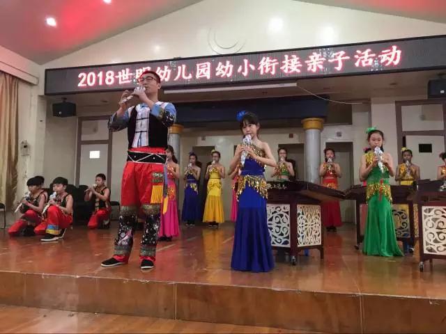 活動中,小學(xué)老師給大班孩子們上了一節(jié)生動有趣的數(shù)學(xué)課,和外教老師一起互動游戲,感受學(xué)習(xí)英語的樂趣。緊接著,家長們觀看了世明小學(xué)民樂教學(xué)的特色展示,優(yōu)美的民族舞,動聽的琵琶、二胡、揚(yáng)琴、古箏合奏。