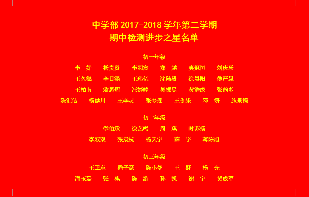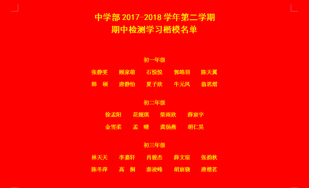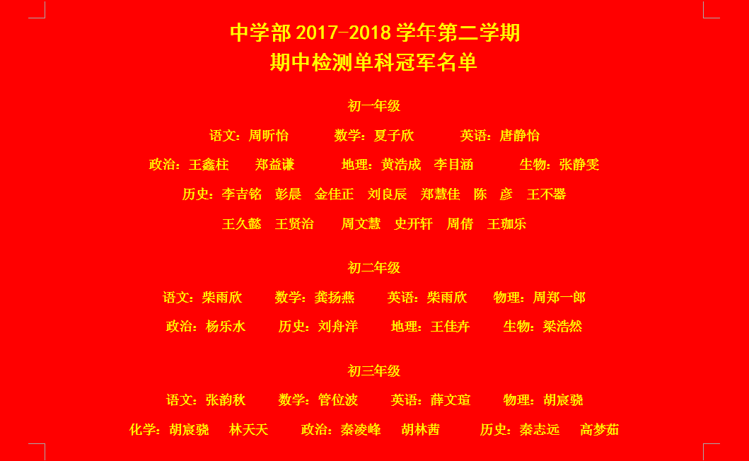 中學部2017-2018學年第二學期期中表彰名單