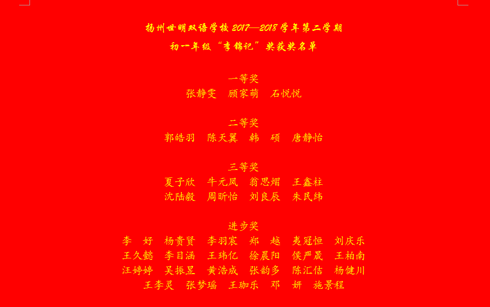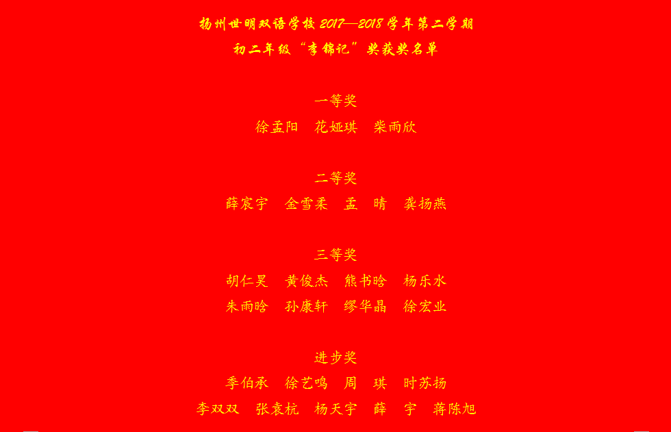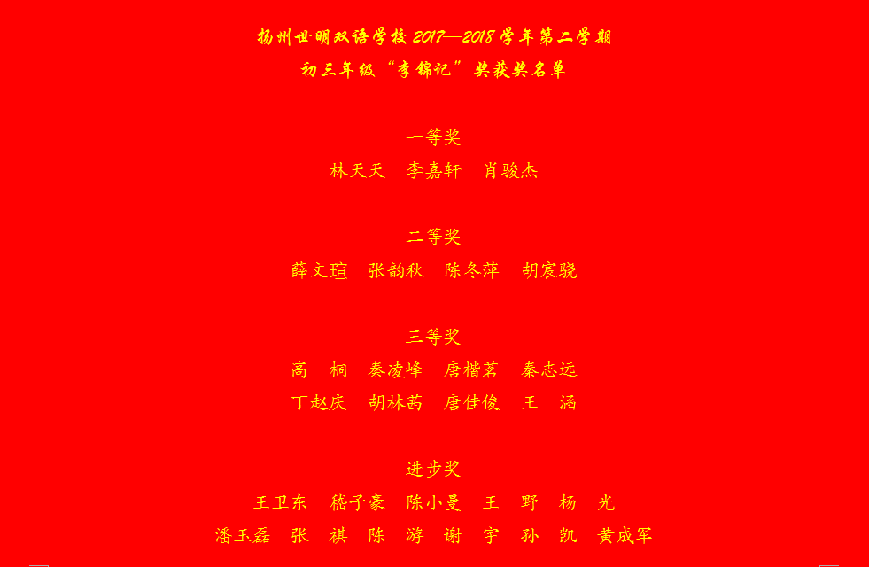 中學(xué)部2017-2018學(xué)年第二學(xué)期李錦記獎(jiǎng)獲獎(jiǎng)名單
