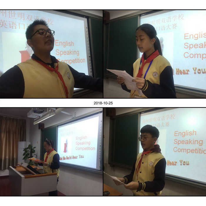 為激發(fā)廣大學(xué)生學(xué)習(xí)英語(yǔ)的興趣,促進(jìn)英語(yǔ)教學(xué)課程改革,全面提高學(xué)生的英語(yǔ)語(yǔ)言運(yùn)用能力和綜合素養(yǎng),2018年10月9日,揚(yáng)州市世明雙語(yǔ)學(xué)校英語(yǔ)組開(kāi)展了口語(yǔ)大賽海選工作,18名同學(xué)脫穎而出,參加了在10月24日舉行的復(fù)賽選拔。