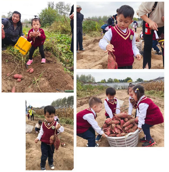 哦,紅薯原來是長(zhǎng)在地底下的!一串一串的紅薯,真有趣!我們一起把紅薯抬回家吧!