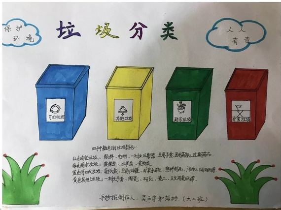 與此同時(shí),世明幼兒園還在各班設(shè)立垃圾分類(lèi)區(qū)域、垃圾分類(lèi)手抄報(bào)以及尋找校園里的分類(lèi)垃圾桶活動(dòng),培養(yǎng)幼兒樹(shù)立“垃圾分類(lèi)要從小做起”的理念。