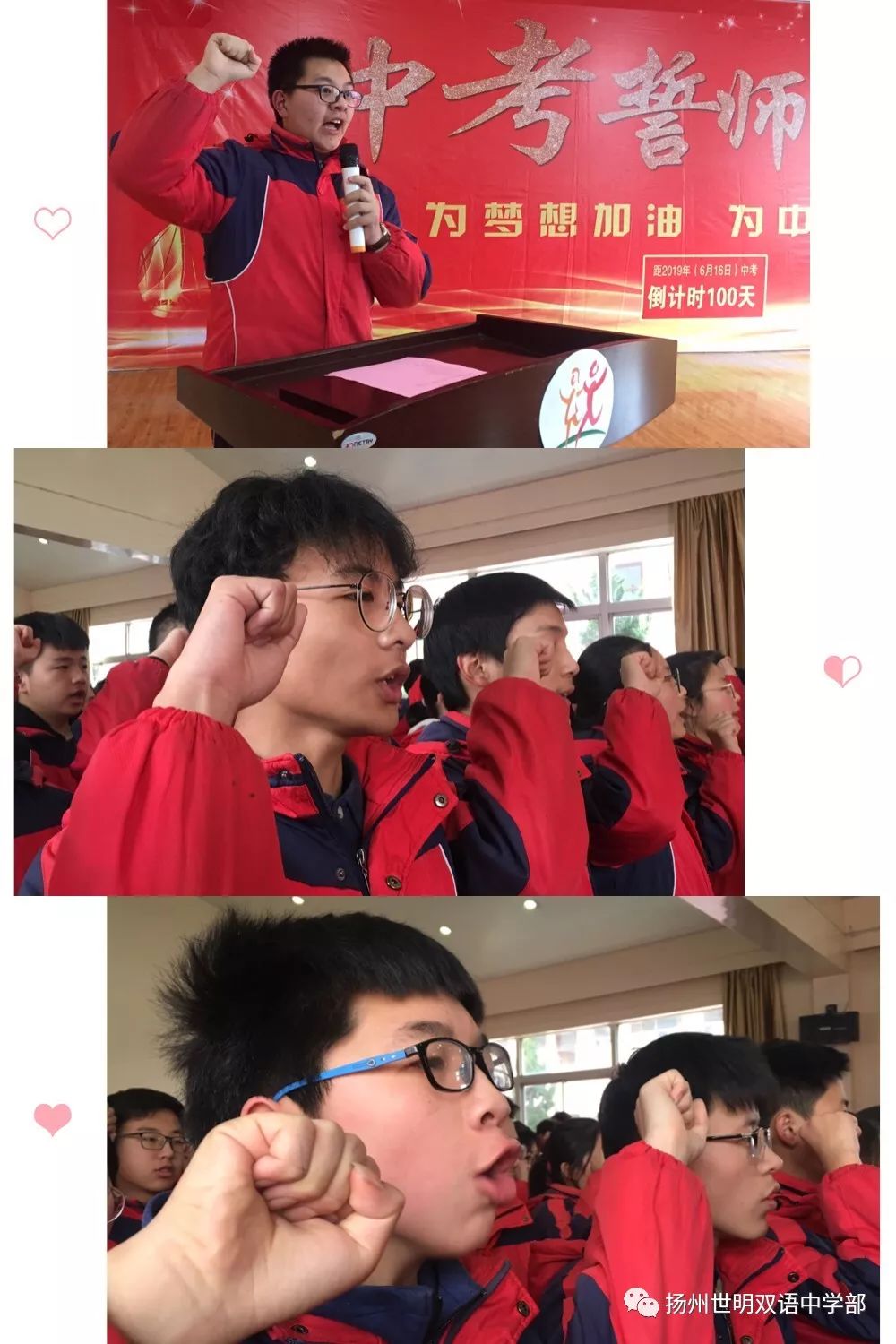 “在這100天里,我們?nèi)w初三老師將陪同大家一同走過,將與你們并肩作戰(zhàn),同舟共濟(jì)。最后的一百天里,我們會(huì)有更嚴(yán)格的要求,更艱苦的訓(xùn)練,更嚴(yán)厲的批評(píng),但請(qǐng)相信,通過我們?nèi)w師生的共同努力,我們一定能決勝于千里之外。”