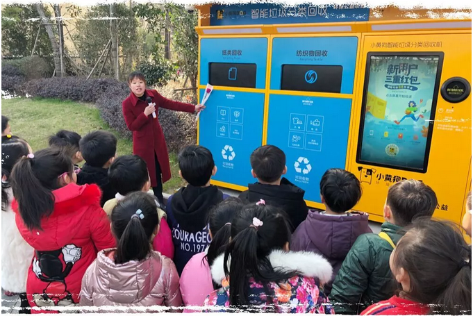 ? 走近小區(qū)里具有環(huán)保新理念的“小黃狗智能垃圾分類回收機”,孩子們紛紛猜測這個機器為什么叫“小黃狗”?有小朋友說:“因為小狗會將地上的臟東西撿起來”、“可能小狗知道哪里有不好的東西,它會叫主人去把它打掃一下”、“可能狗是人的朋友,所以小狗會幫助我們的”……在管理員阿姨的介紹下,孩子們了解到“小黃狗”是高效、便捷的有償回收機器,它分類回收廢紙、塑料、金屬、紡織品、玻璃、有害物質(zhì)等廢棄物,讓居住在小區(qū)的人們在方便的基礎上有效的保護環(huán)境。