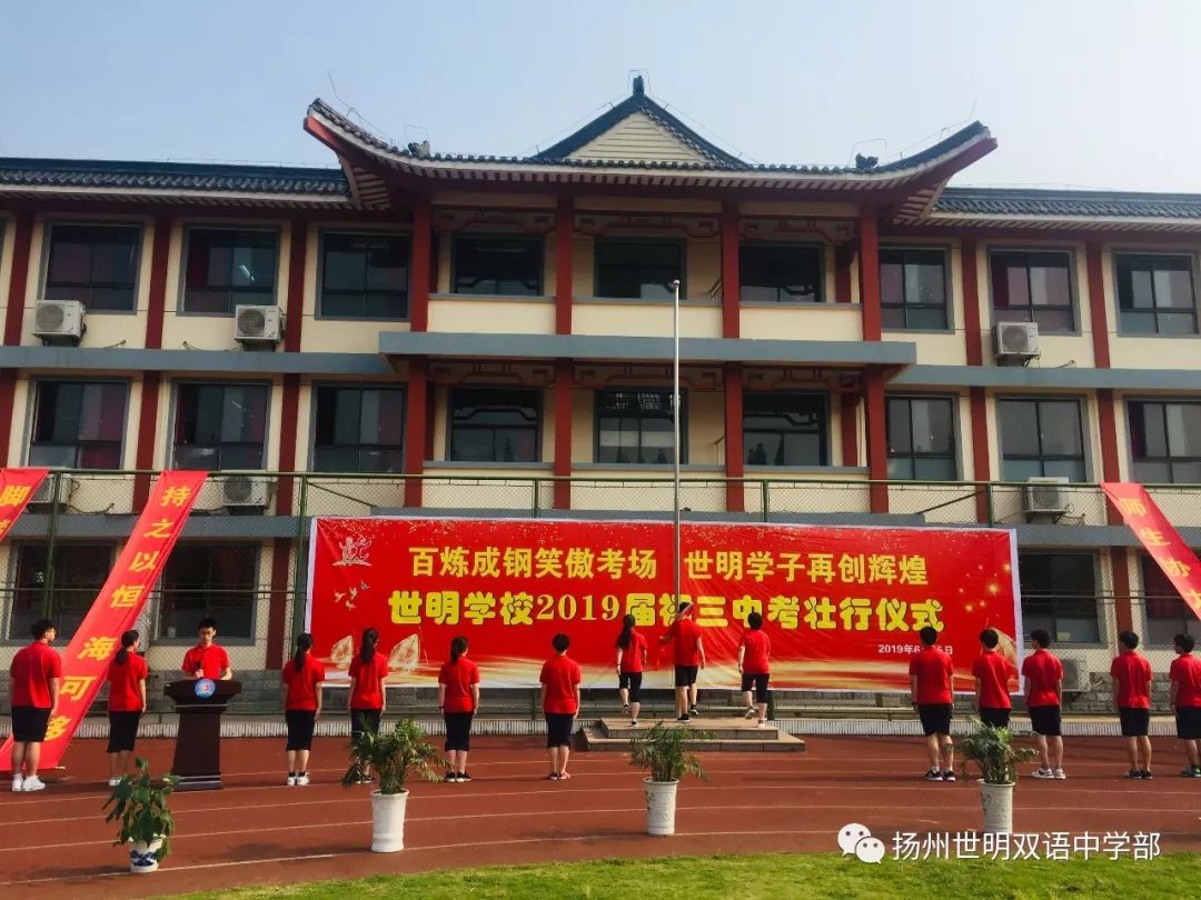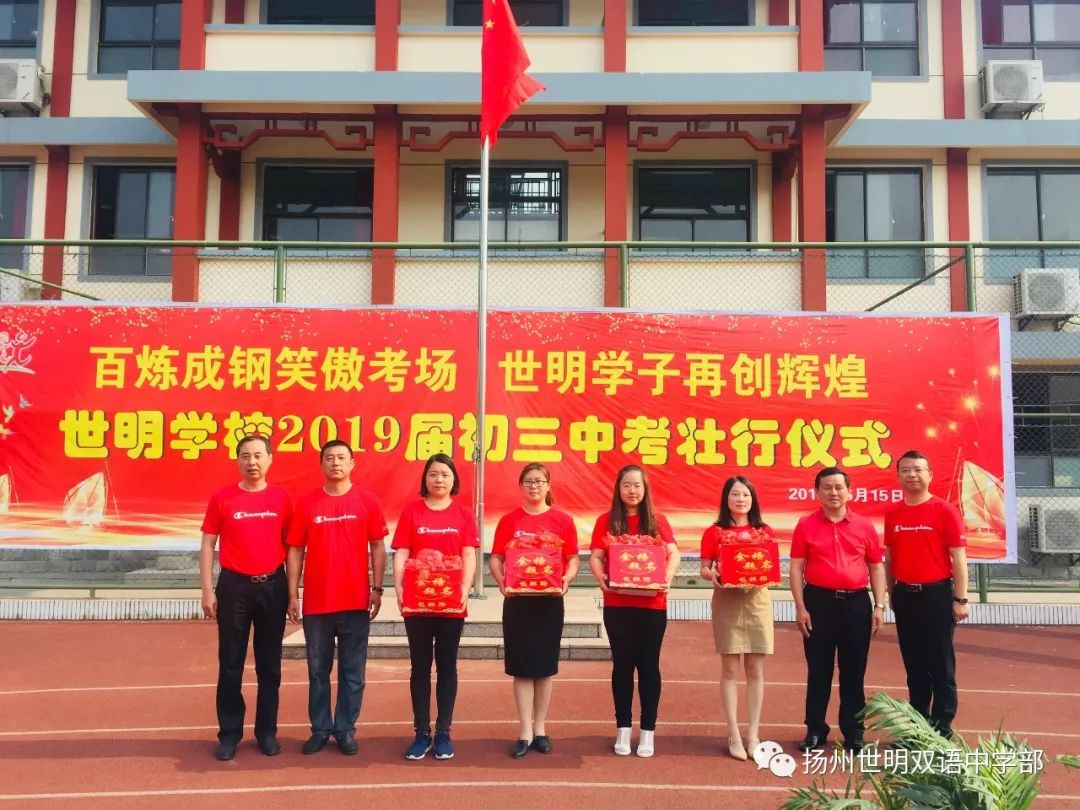 自古英雄出少年,“十年寒窗豐羽翼,今朝搏擊翻長空”。2019年6月15日,揚州世明雙語學(xué)校2019屆中考壯行儀式隆重舉行。初三學(xué)子高舉戰(zhàn)旗、踏上紅毯、邁入必勝門。