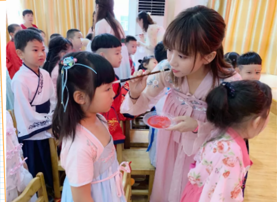 ?一早,大班的小朋友們穿著漢服早早地在幼兒園迎接朋友們的到來,并給大家送上了寓意“身體棒棒、學習棒棒”的甜蜜棒棒糖。在哥哥姐姐的祝福中,剛剛?cè)雸@的小朋友心中的焦慮和不安漸漸消失,露出了甜甜的笑容。