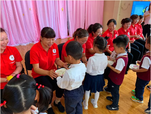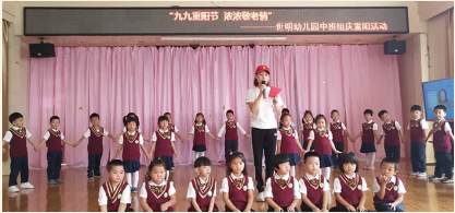 ? 在新中國成立70周年和重陽節(jié)來臨之際,世明幼兒園充分利用節(jié)日文化、挖掘社區(qū)教育資源,攜手市紅十字會,組織社區(qū)老人、家長代表和退休職工來園開展“九九重陽節(jié)、濃濃敬老情”活動,旨在和老人們一起分享節(jié)日的快樂,同時培養(yǎng)幼兒尊老、敬老的良好品質(zhì)。