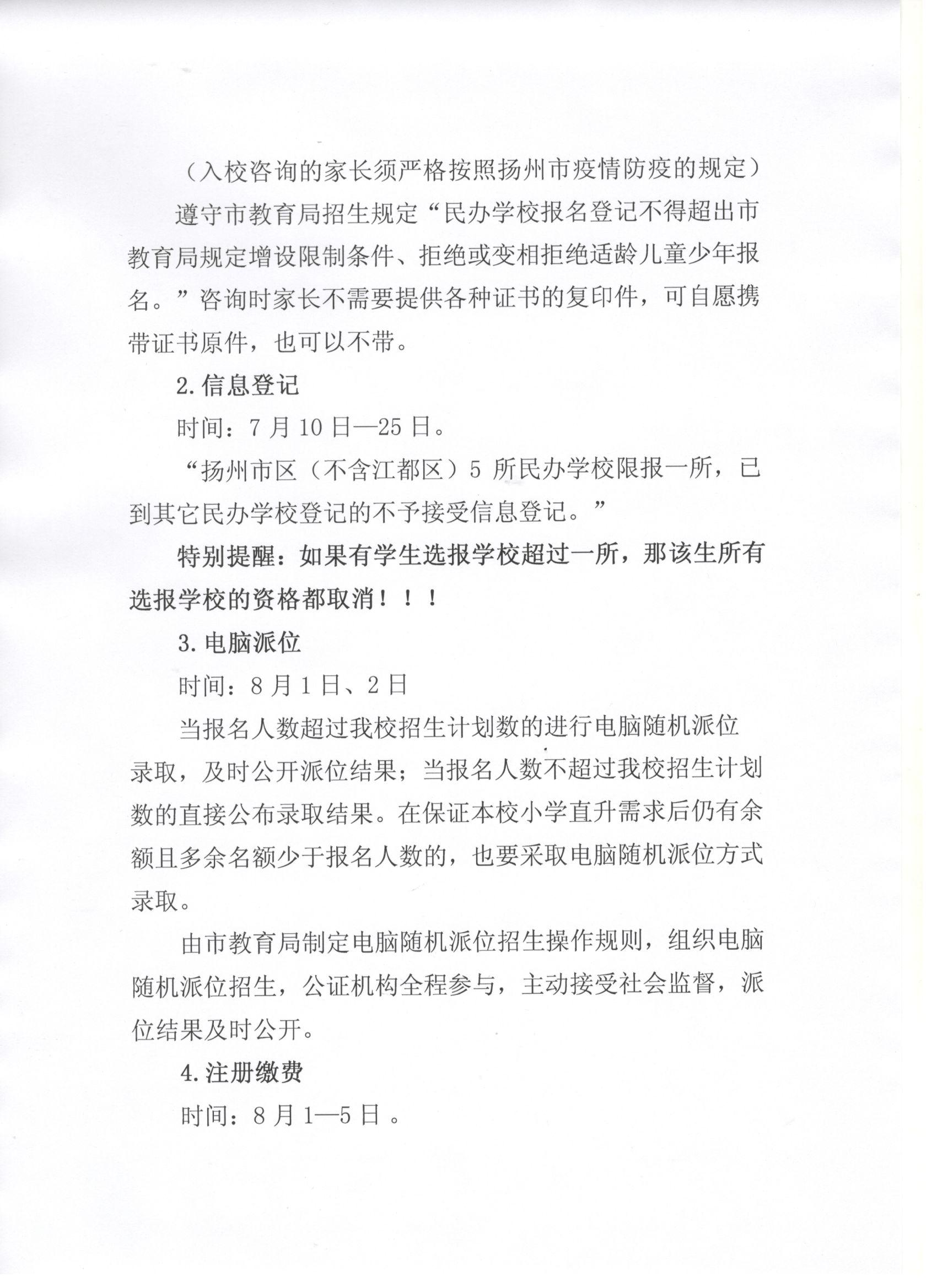 2020年揚(yáng)州世明雙語學(xué)校初一招生方案