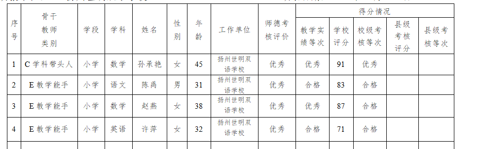 ? ? 根據(jù)市《關(guān)于開展2019-2020學(xué)年省市特級(jí)教師和市級(jí)學(xué)科帶頭人、中青年教學(xué)骨干、教學(xué)能手業(yè)務(wù)考核工作的通知》,現(xiàn)擬下列老師考核結(jié)果公示如下: