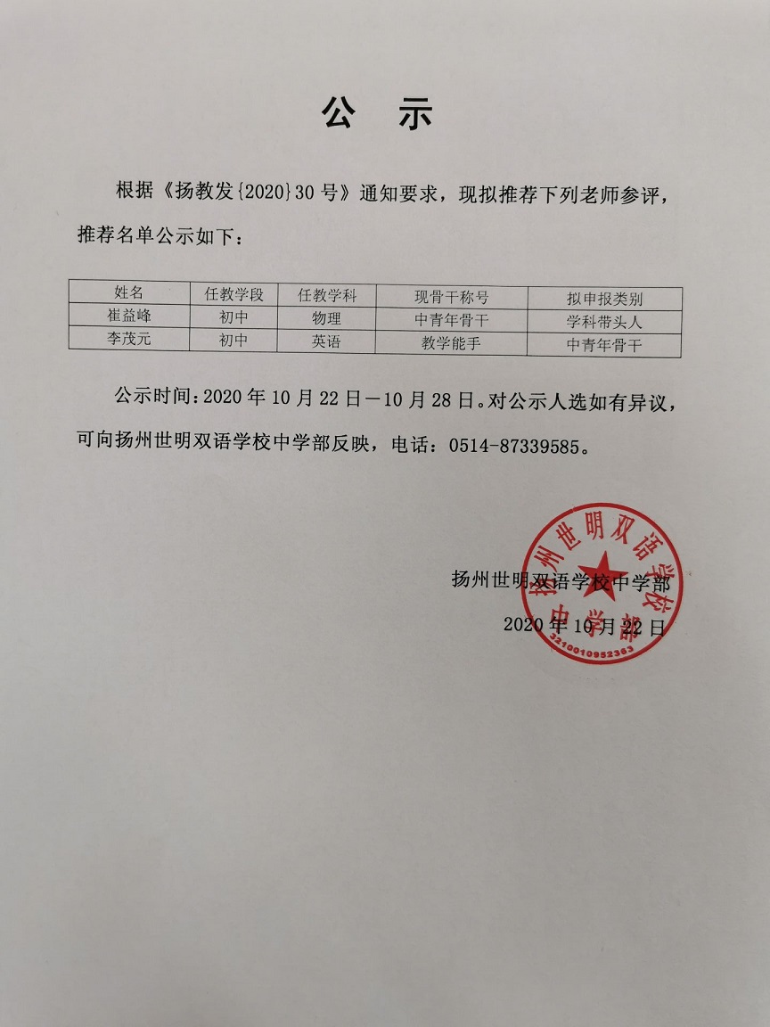 蜀岡-瘦西湖風(fēng)景名勝區(qū)骨干教師公示
